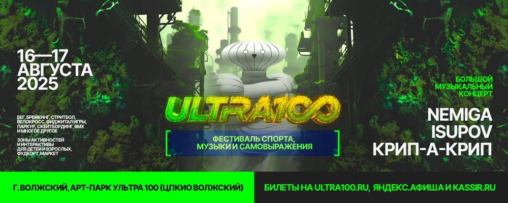 16 августа 2025 года в парке культуры и отдыха Волжский состоится уникальный фестиваль «Ultra 100». Не пропустите!